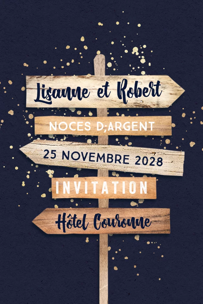 Invitation originale pour noces d'argent avec panneau de direction