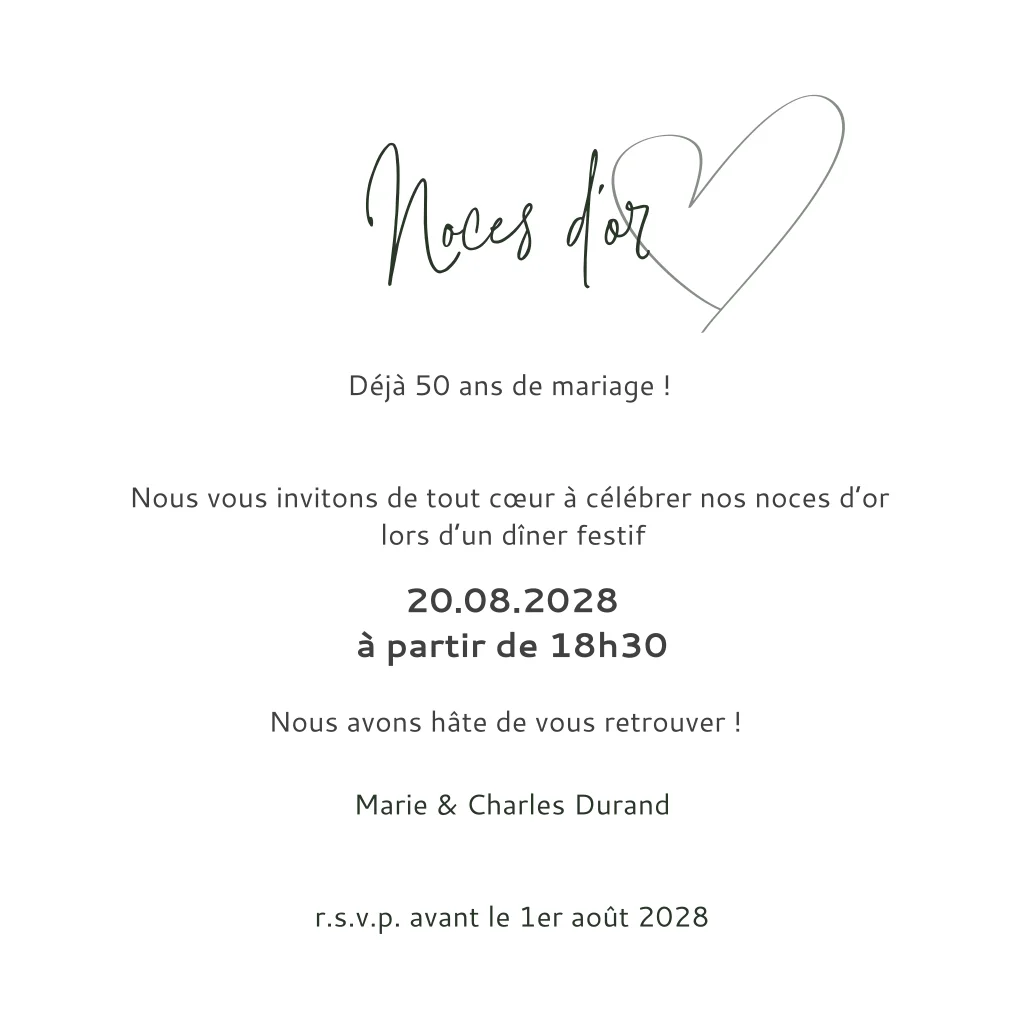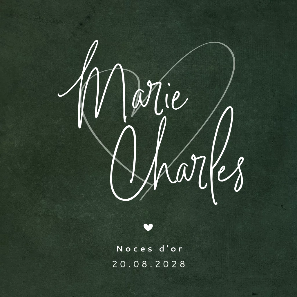 Invitation de noces d'or en vert avec des cœurs et photo.