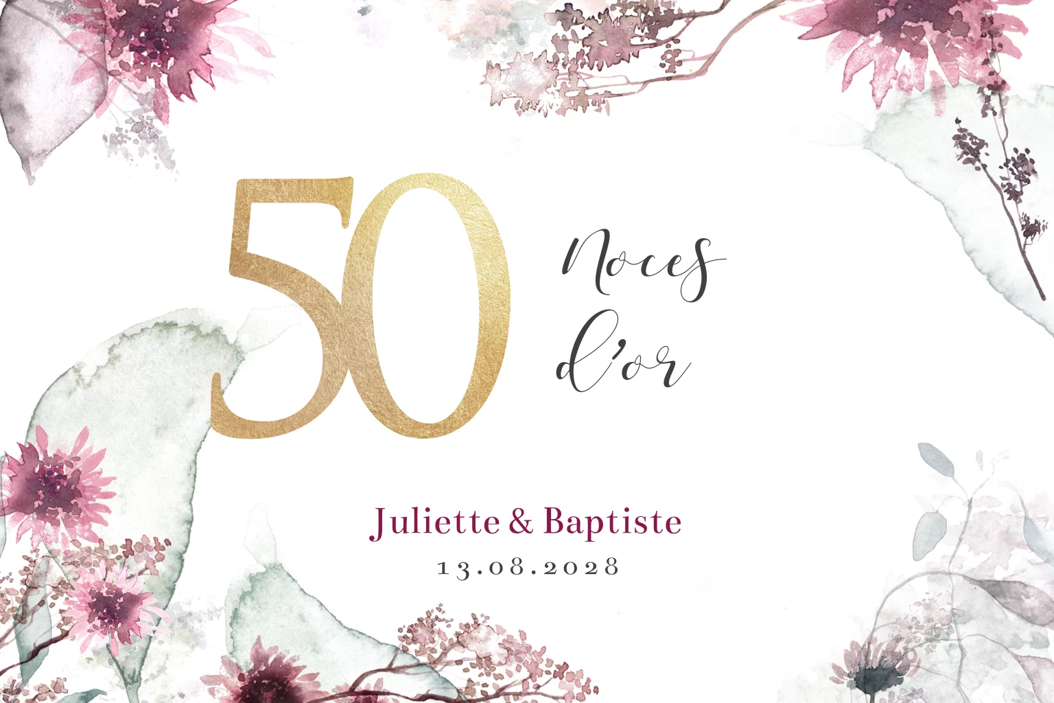 Invitation noces d'or avec des coins arrondis et peinture aquarelle