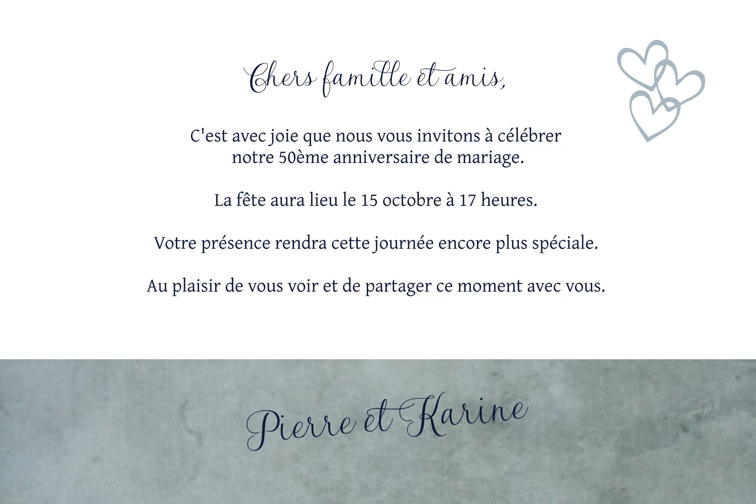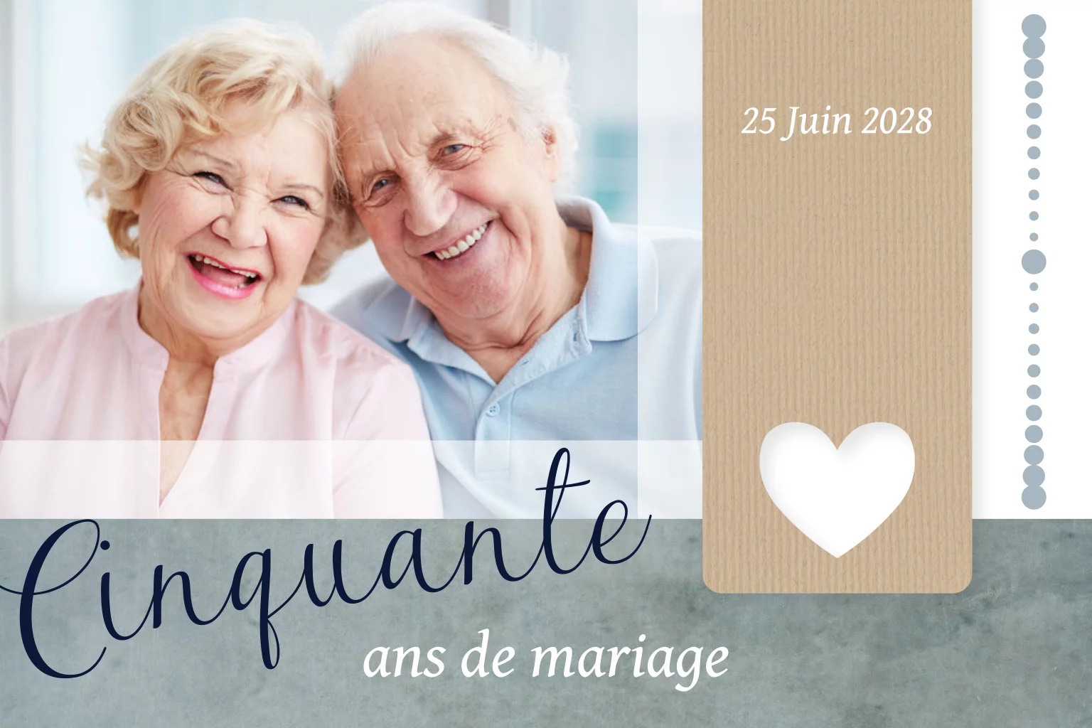 Invitation noces d'or avec photo et accents bleus
