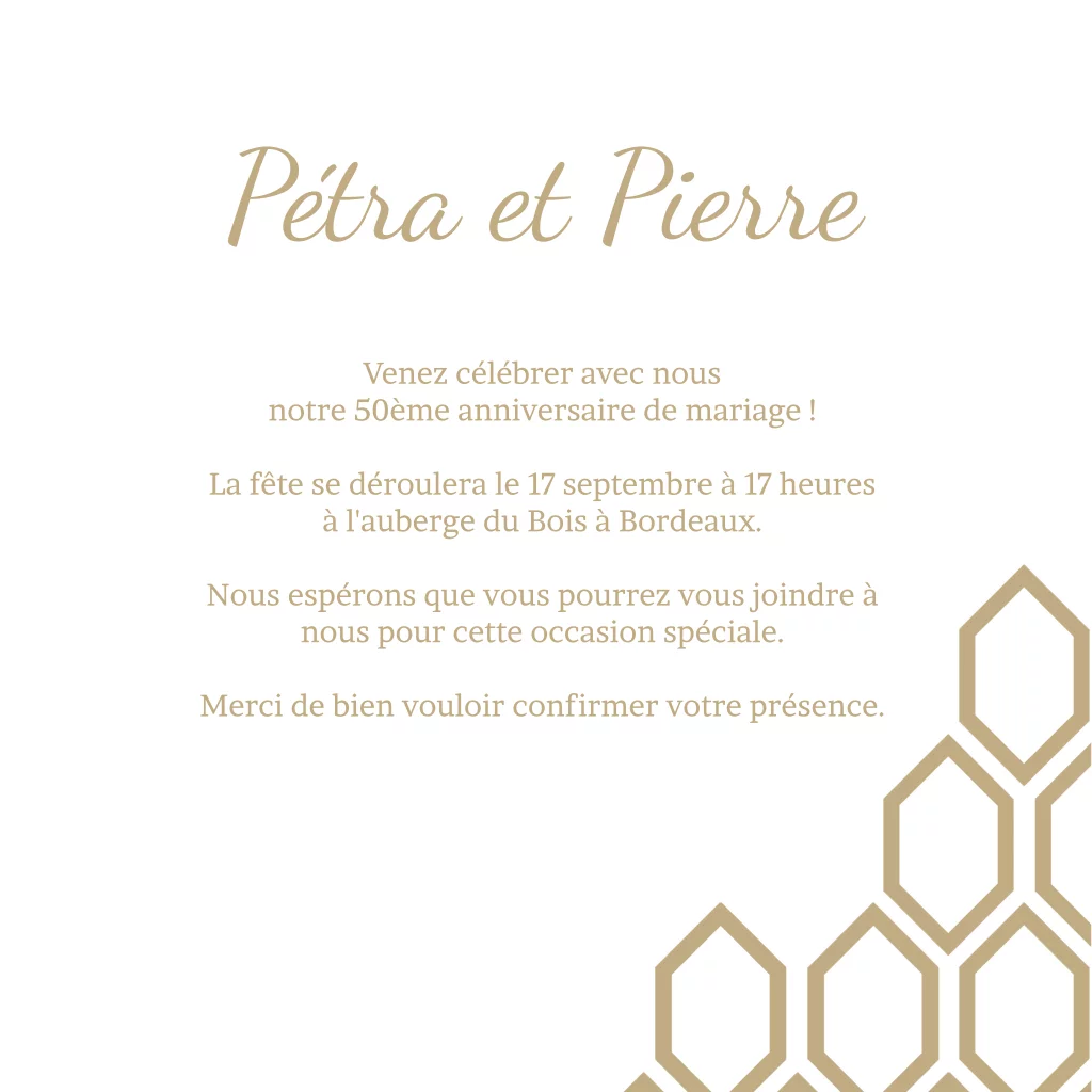 Invitation anniversaire mariage avec des alvéoles jaune-or