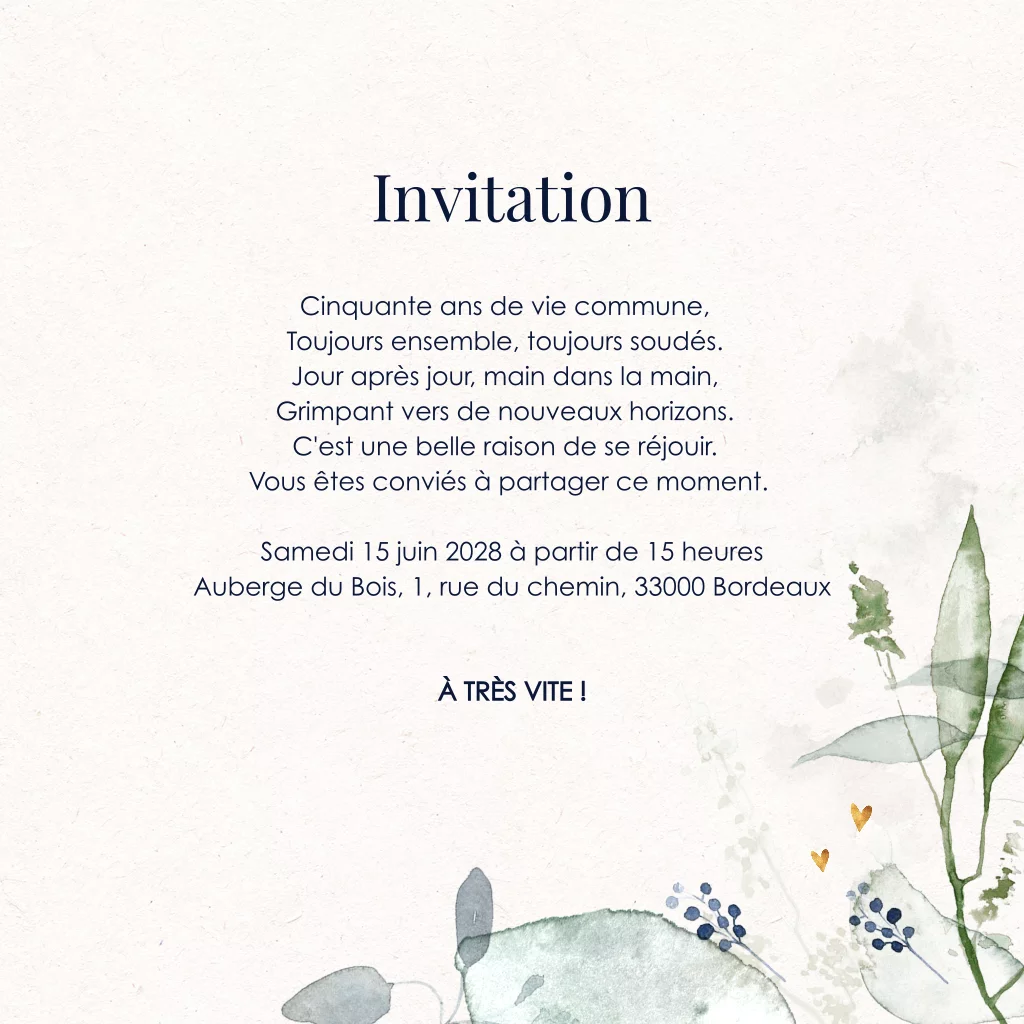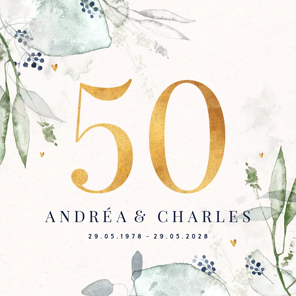 Invitation anniversaire mariage avec branches à l'aquarelle