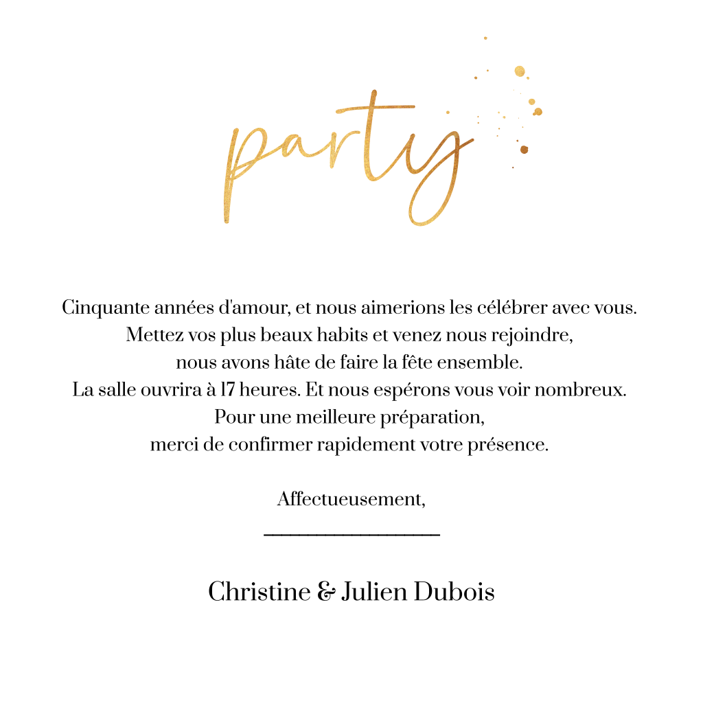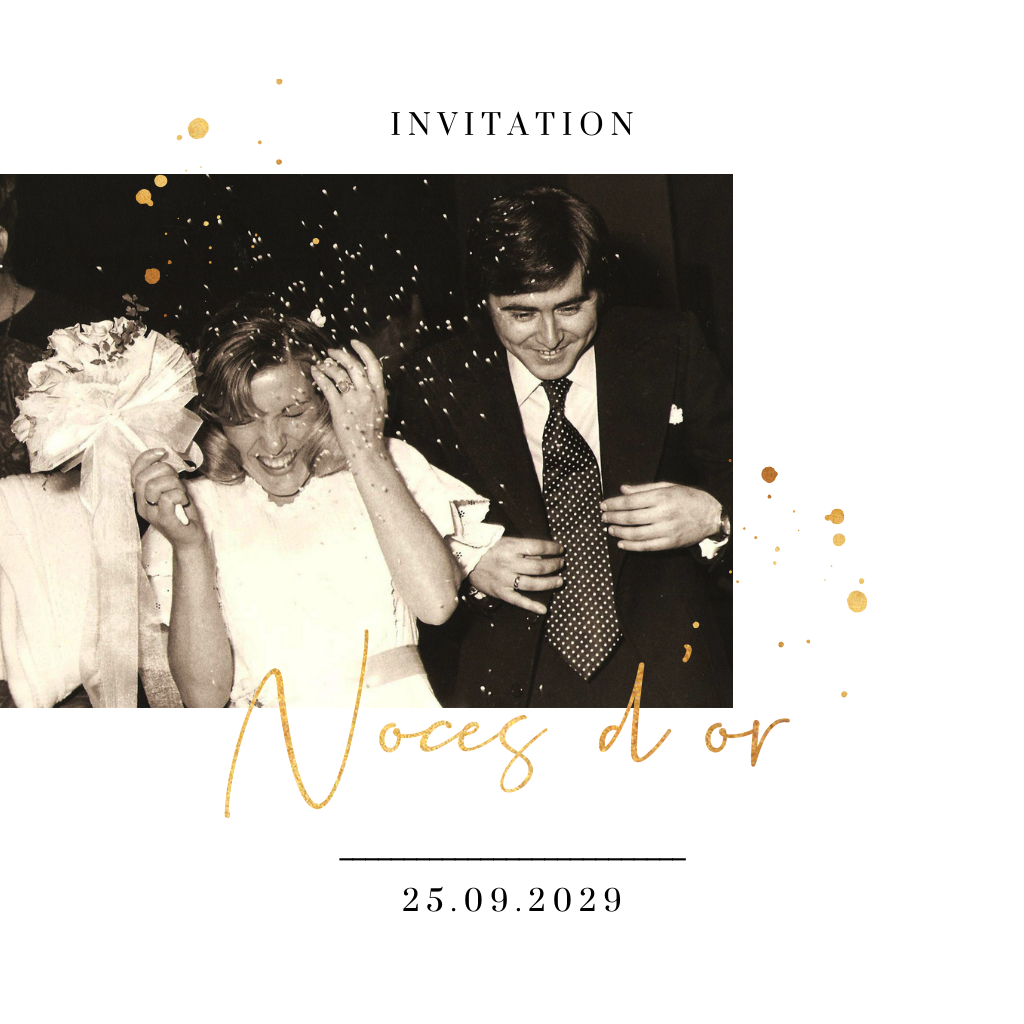 Invitation anniversaire mariage avec photo et détails jaune-or