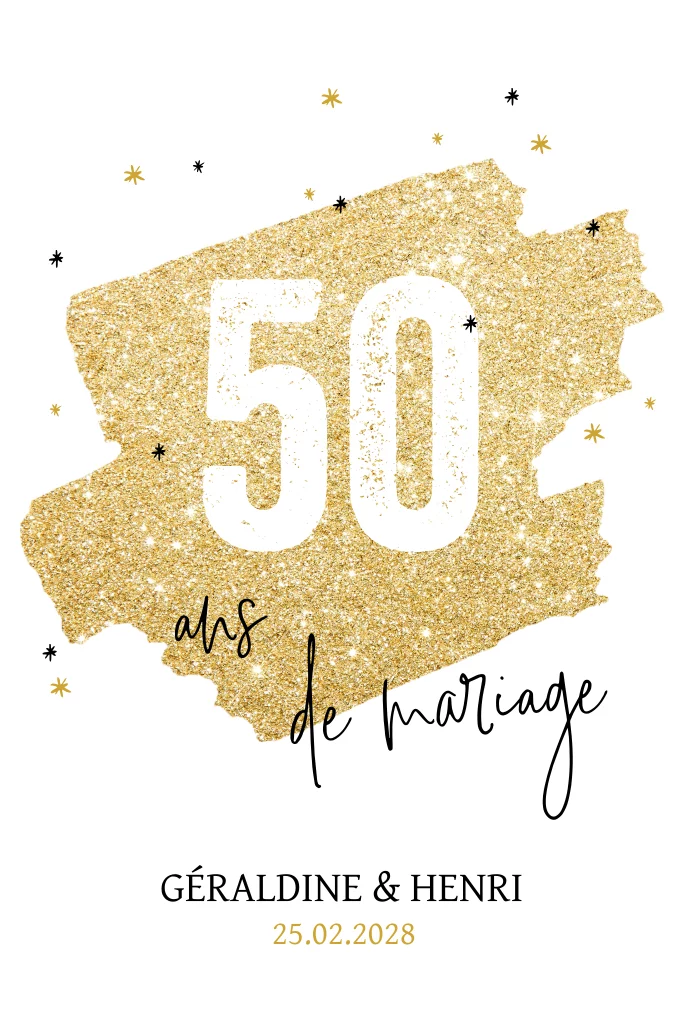 Invitation anniversaire mariage avec étoiles noires et jaunes or