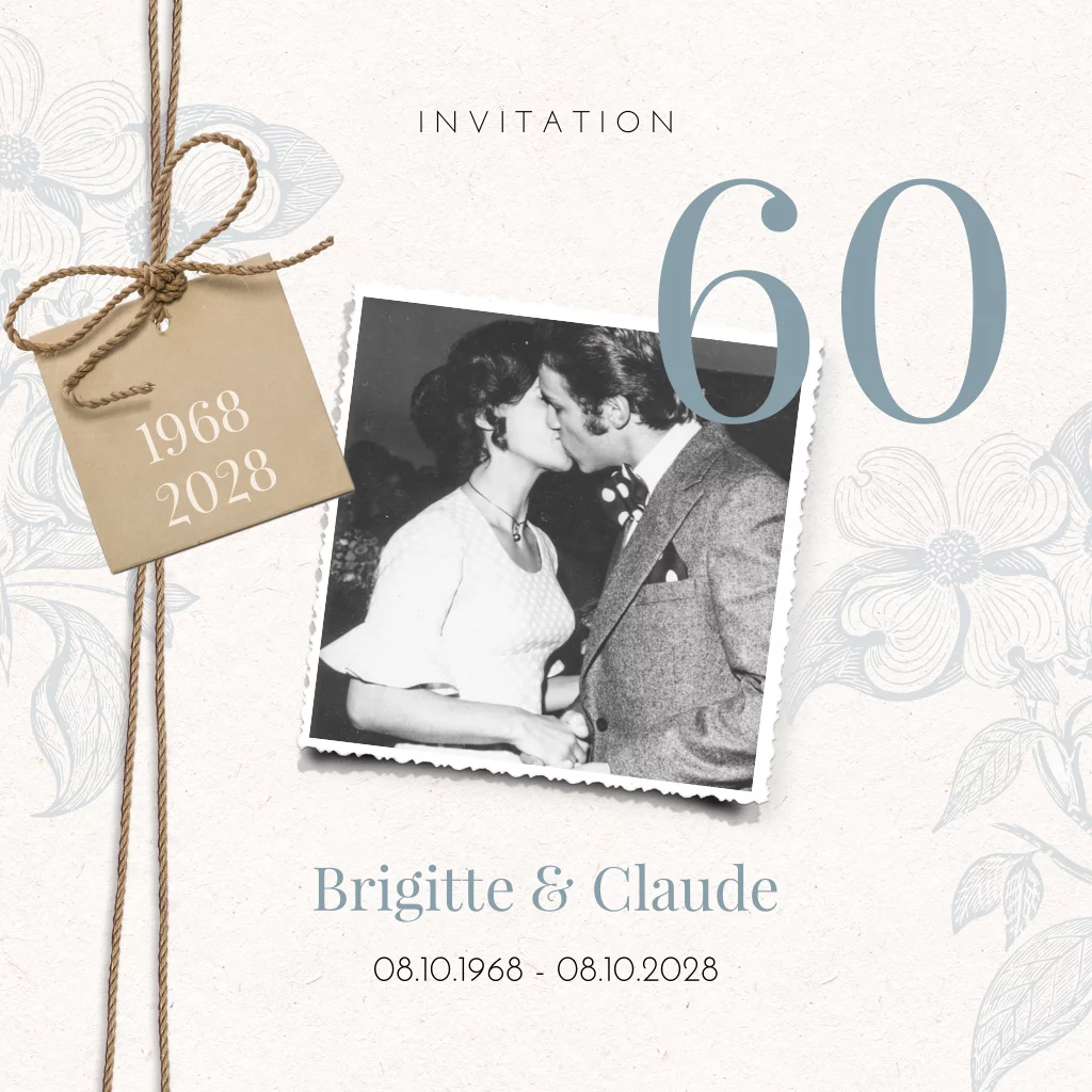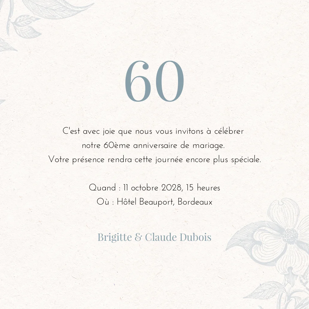 Invitation noces de diamant avec des ornements de fleurs dessinées