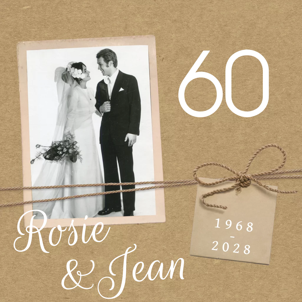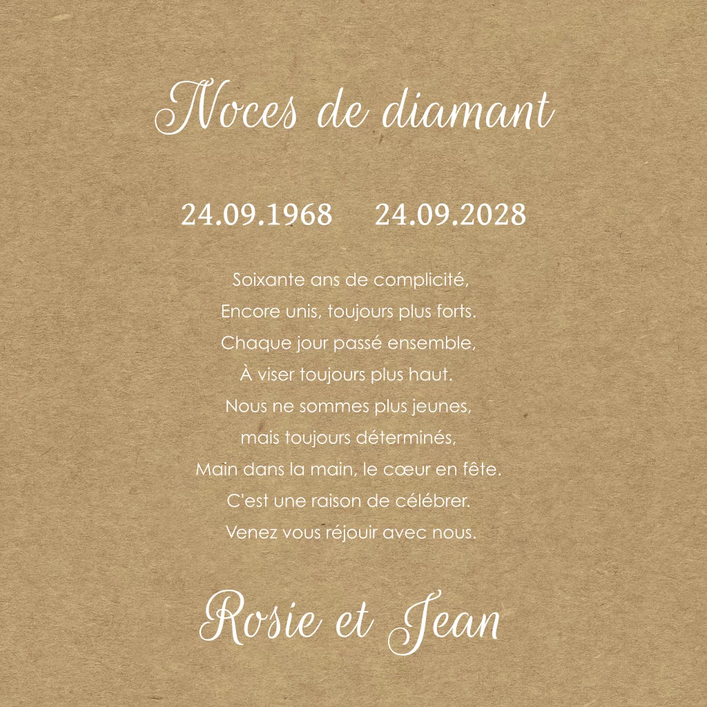 Invitation noces de diamant avec dorure et photo sur aspect kraft