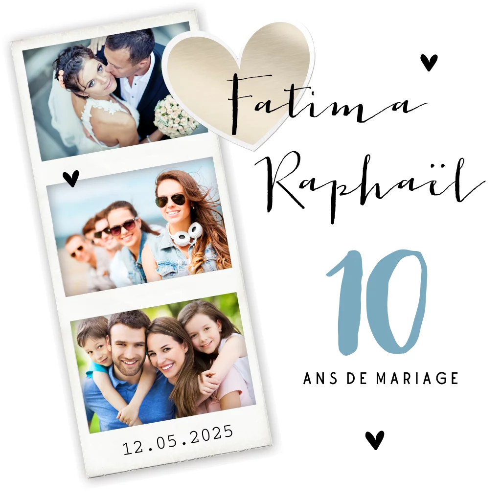 Invitation 10e anniversaire de mariage avec des photos et cœurs