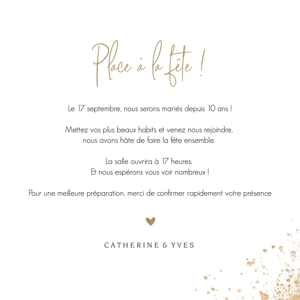 Invitation anniversaire mariage avec aquarelle rose et poussière dorés
