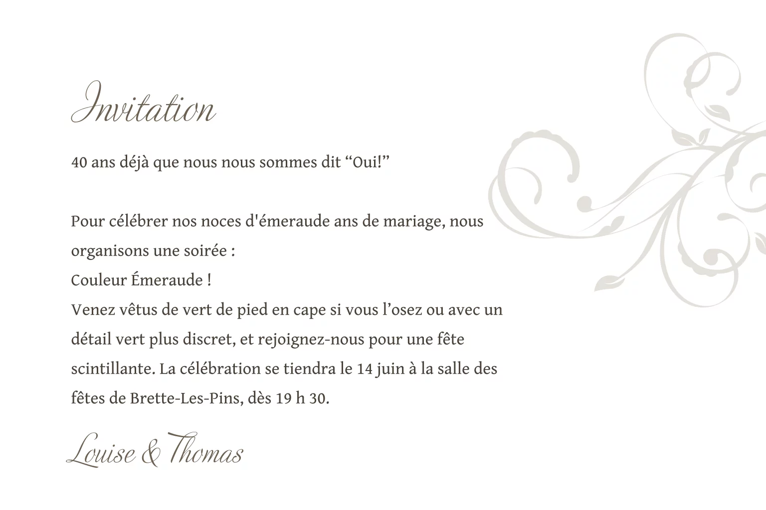 Invitation pour noces d'émeraude dans un esprit vintage.