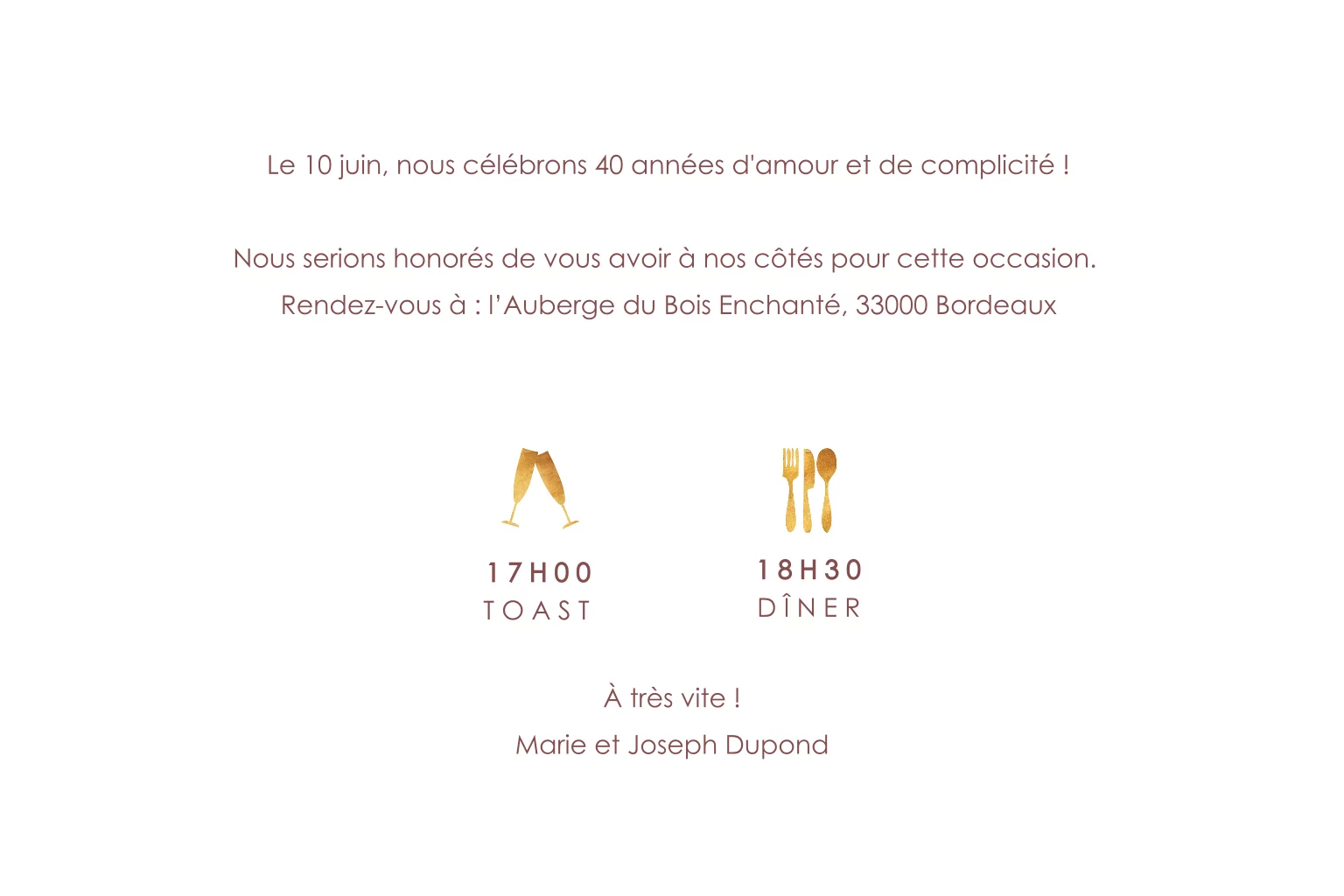 Invitation anniversaire mariage avec confettis sur fond rouge foncé