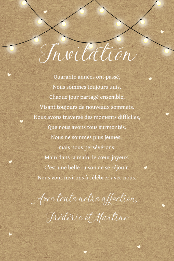 Invitation anniversaire mariage avec guirlandes lumineuses