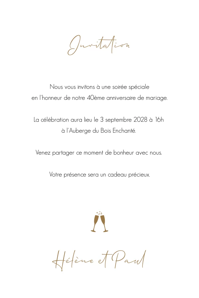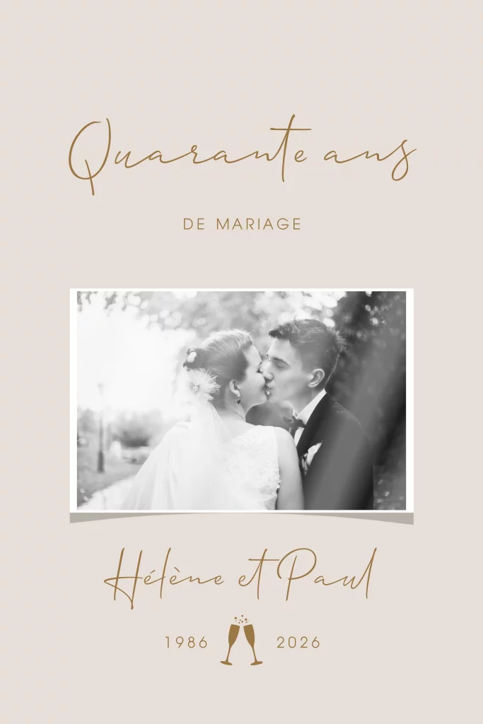 Invitation anniversaire mariage noces d'Emeraude avec photo