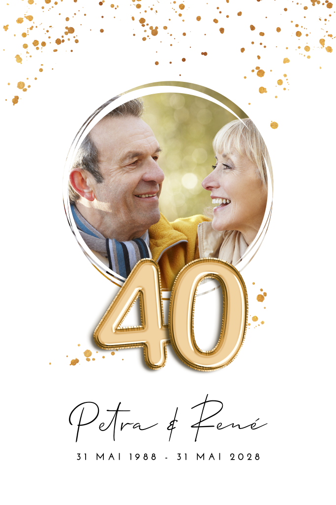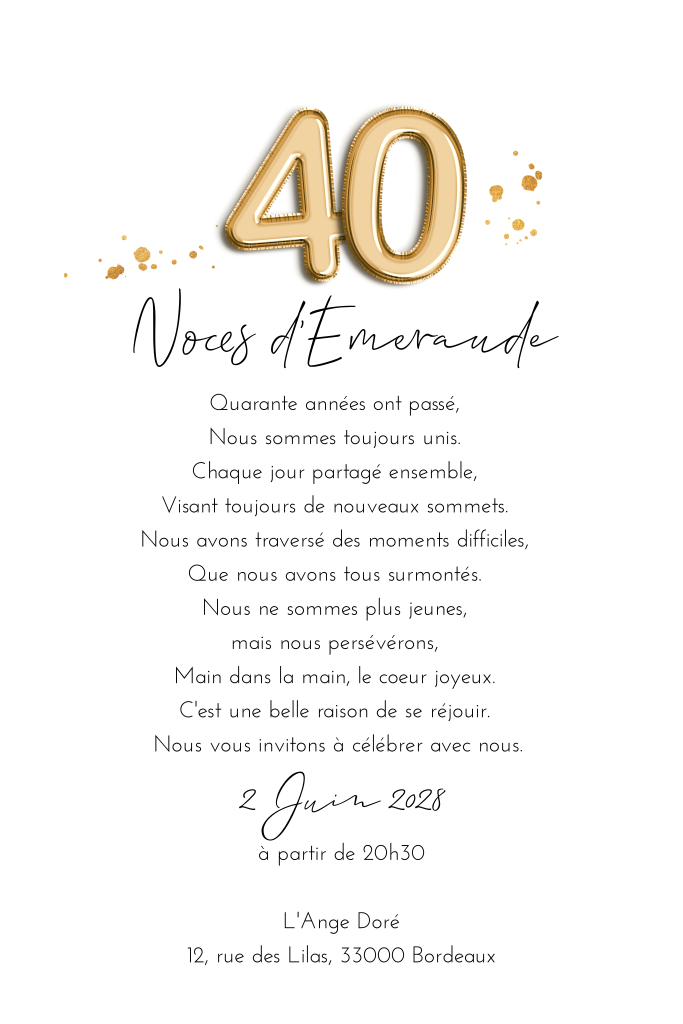 Invitation moderne noces d'emeraude en blanc et jaune-or avec photo