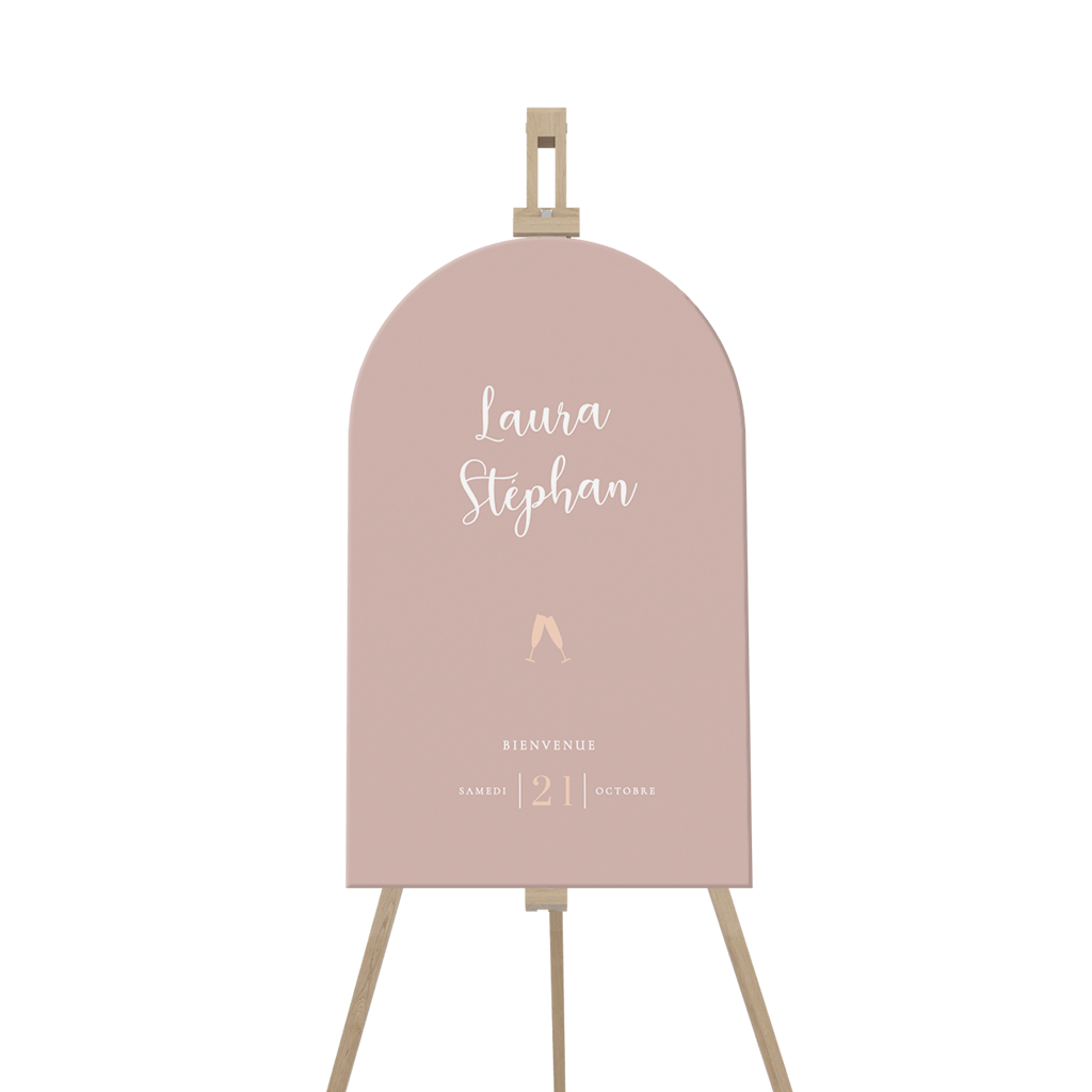 Panneau de bienvenu fond vieux rose, illustration doodle