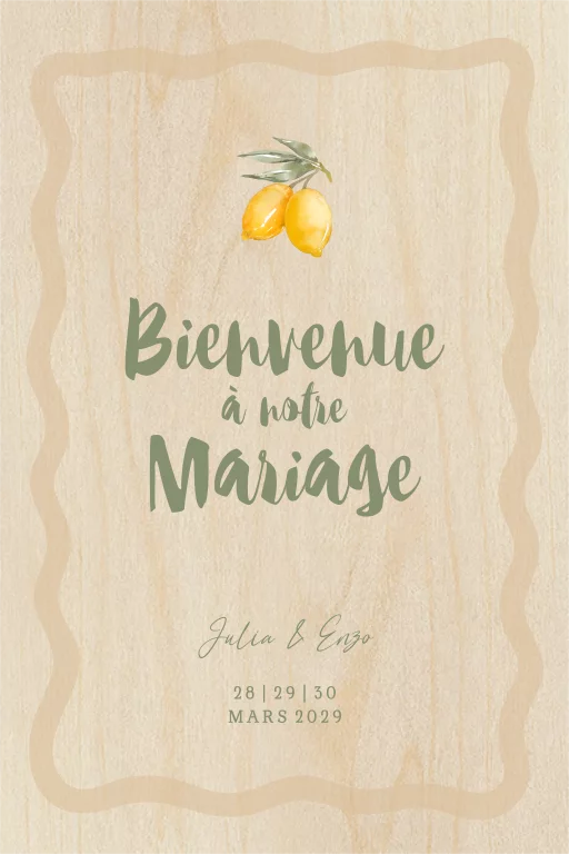Panneau de bienvenue avec citrons et écriture verte