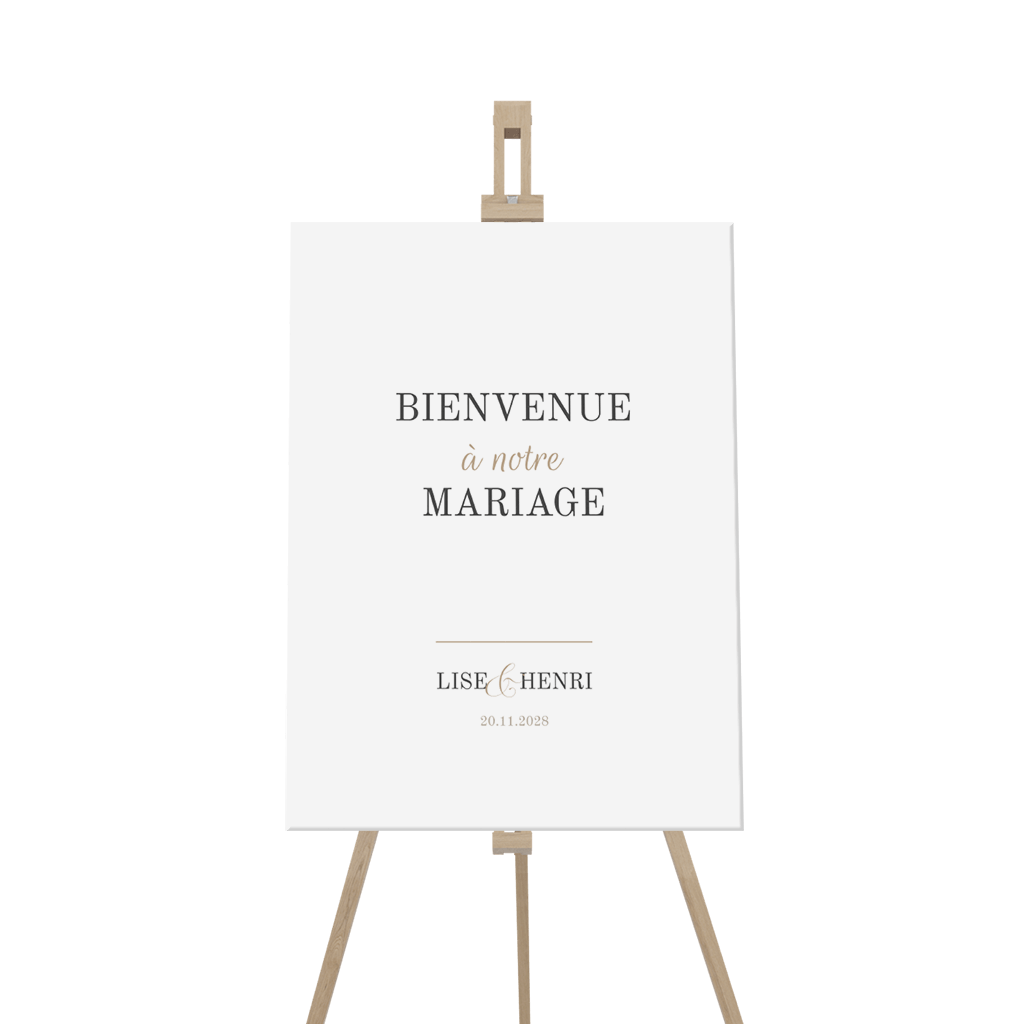 Panneau de bienvenue classique et minimaliste avec écriture beige
