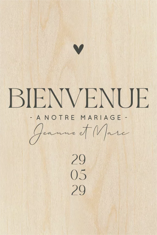 Panneau de bienvenue avec coeur, message et date