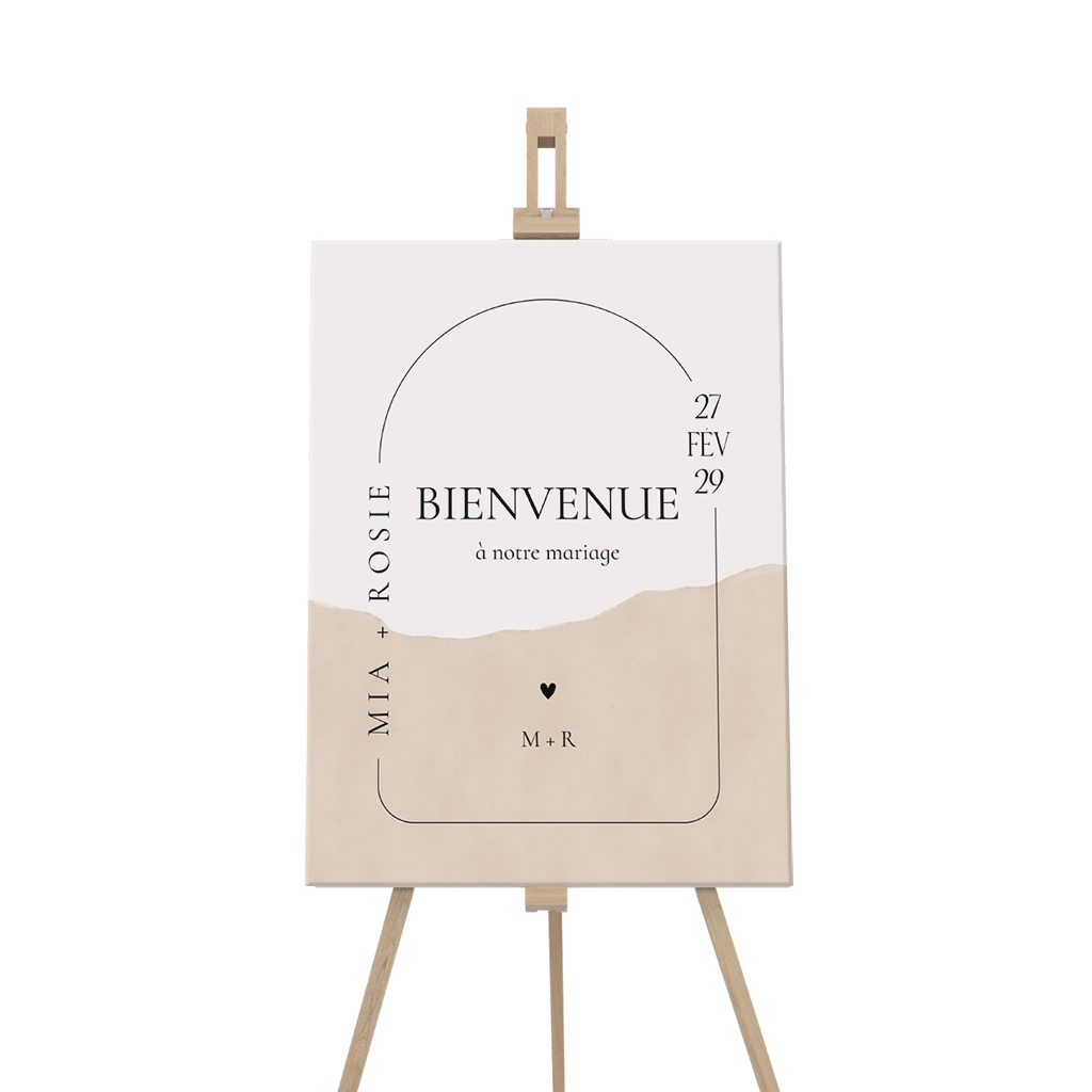 Panneau de bienvenue mariage fond beige et marron clair