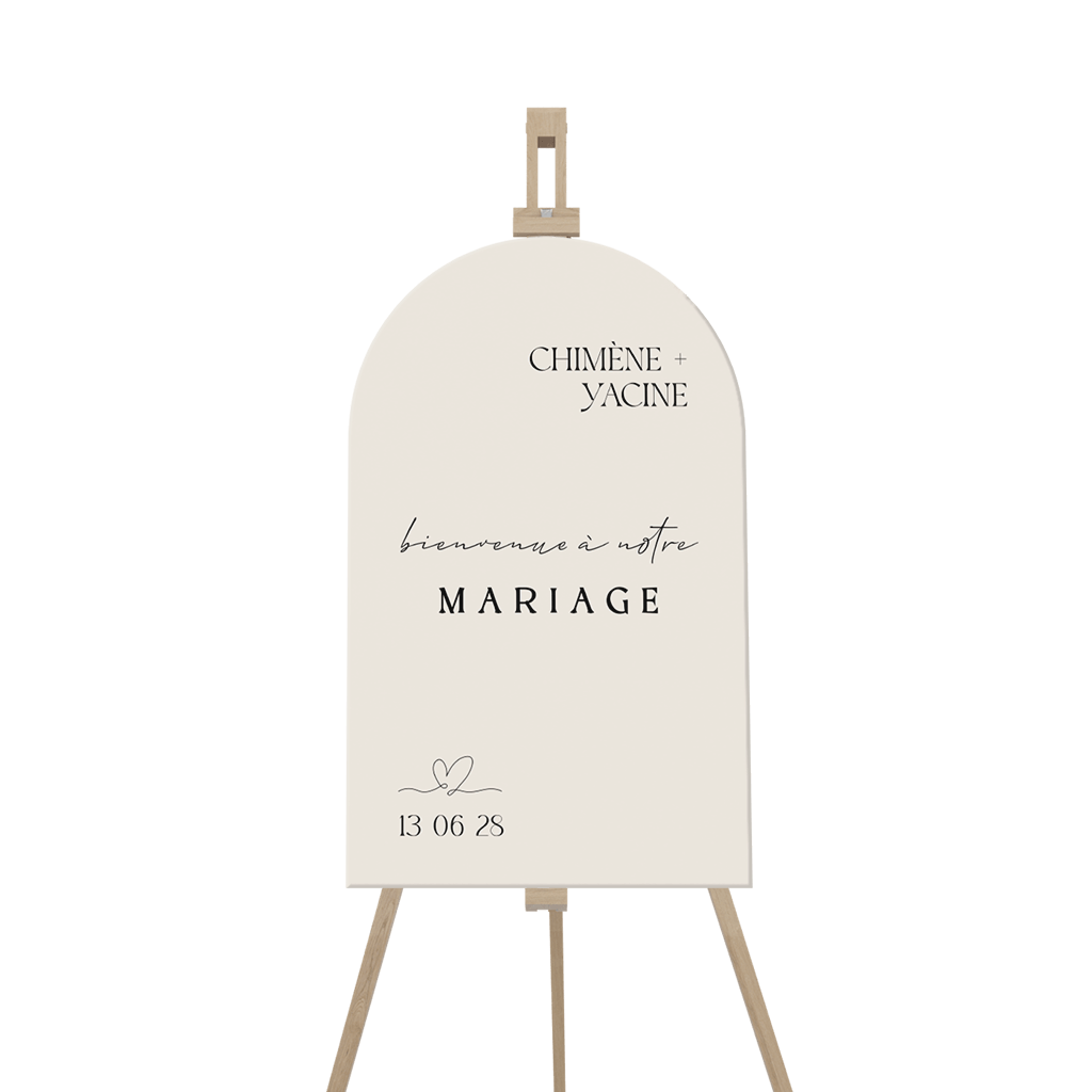 Panneau de bienvenue mariage, forme arche avec fond beige