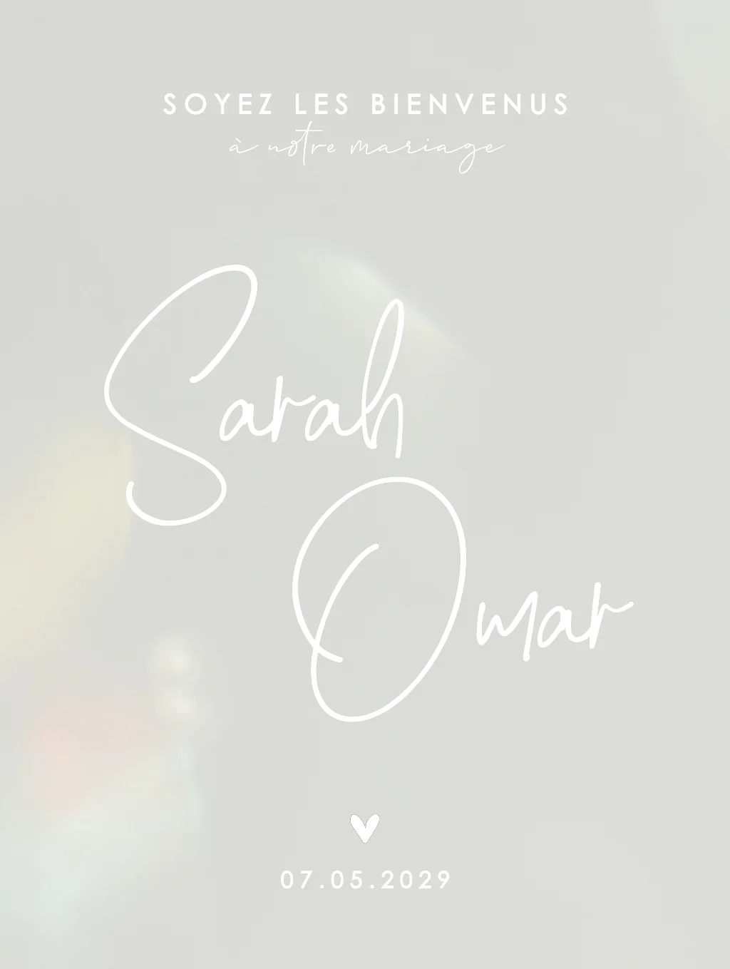 Panneau de bienvenue en plexiglas avec prénoms des mariés et message