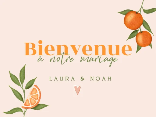 Panneau de bienvenue tendance avec oranges sur fond rose pâle