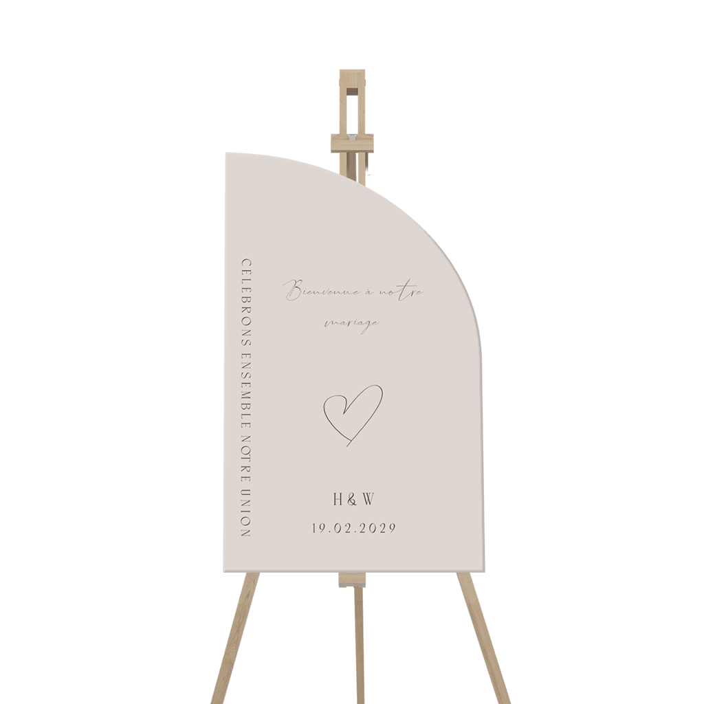 Panneau de mariage courbé, élégant, avec dessin de coeur