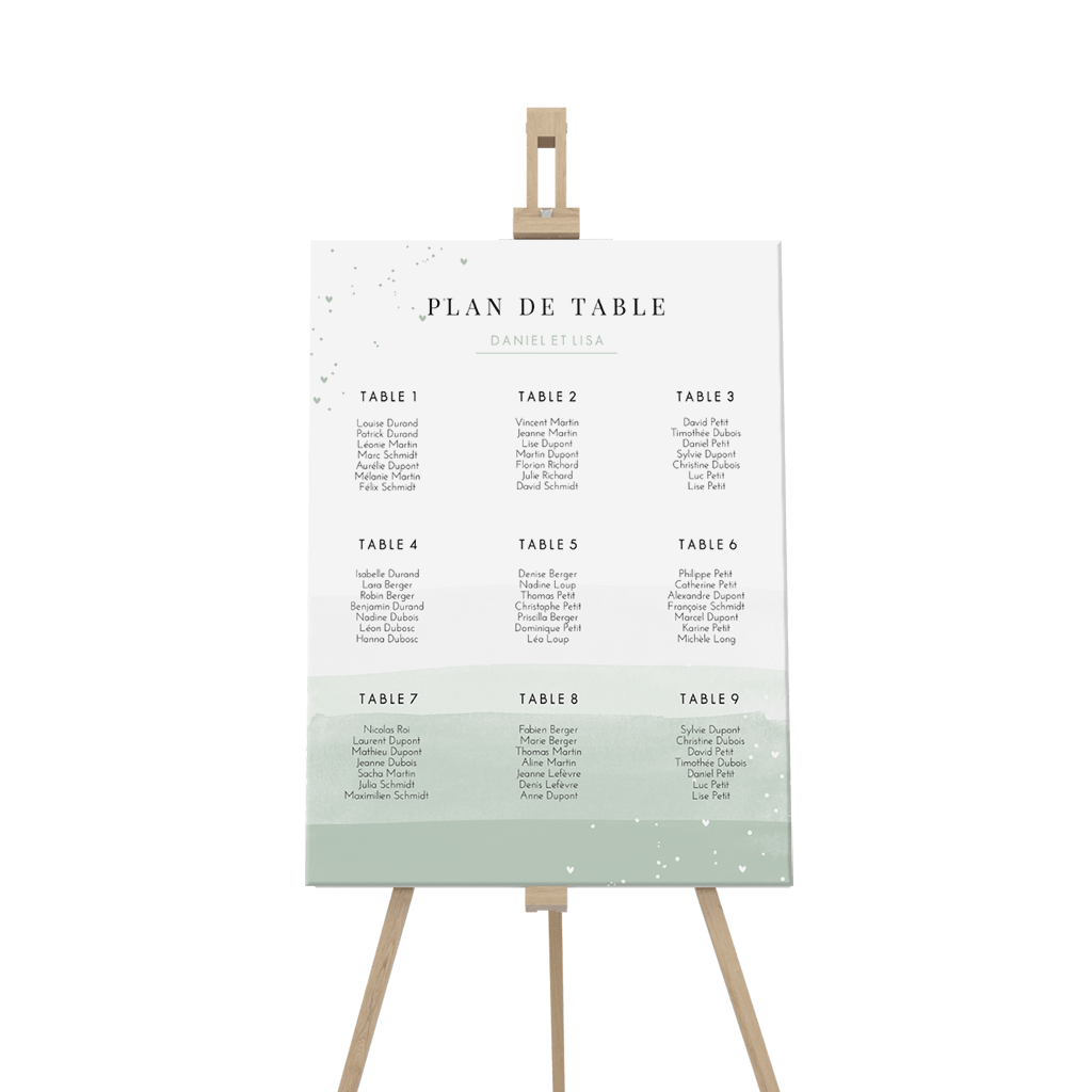 Panneau plan de table avec des nuances de verts à l'aquarelle