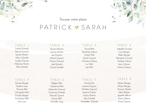Plan de table avec feuillages à l'aquarelle