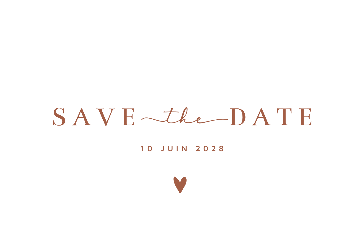 Save the date avec un texte brun et des feuilles aux traits fins.