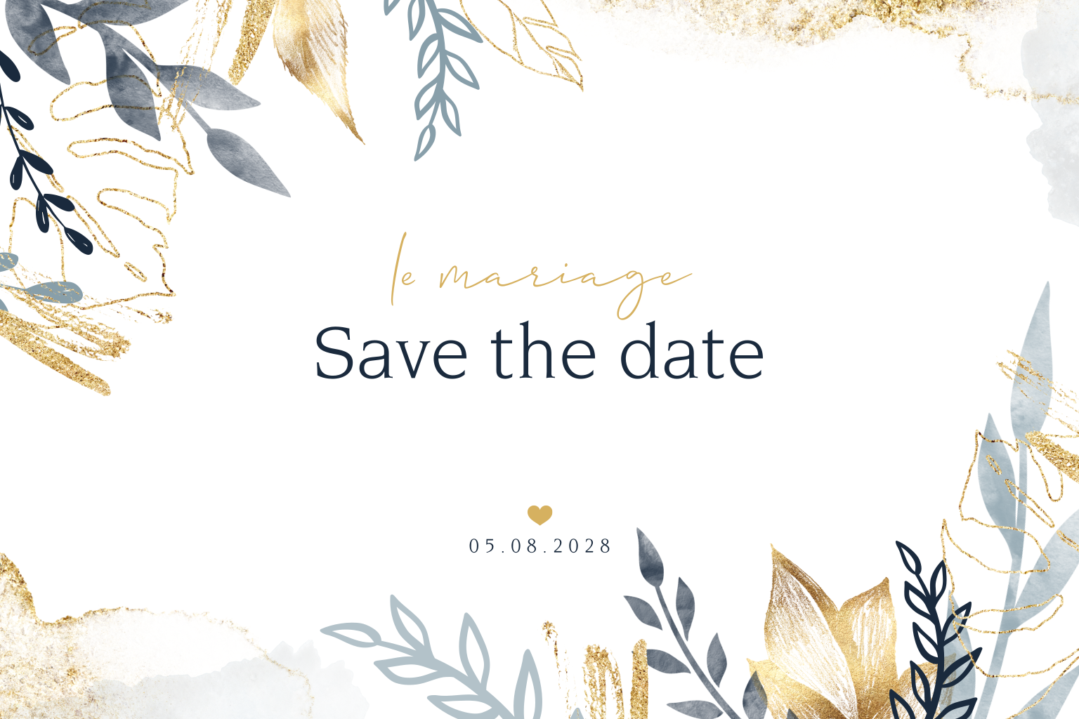 Save the date avec des branches de couleur dans un style doré