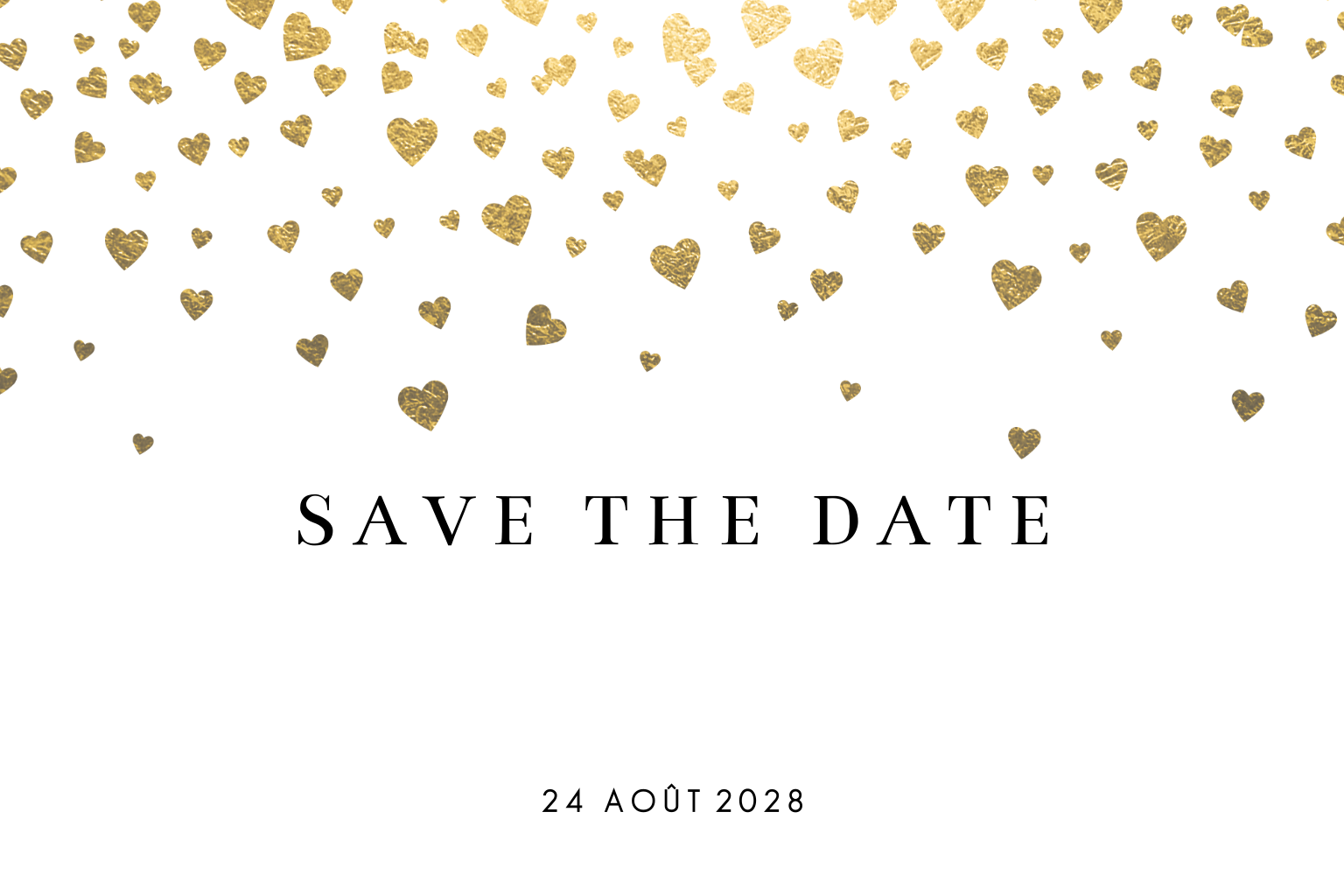 Save the date avec une pluie de coeurs dorés