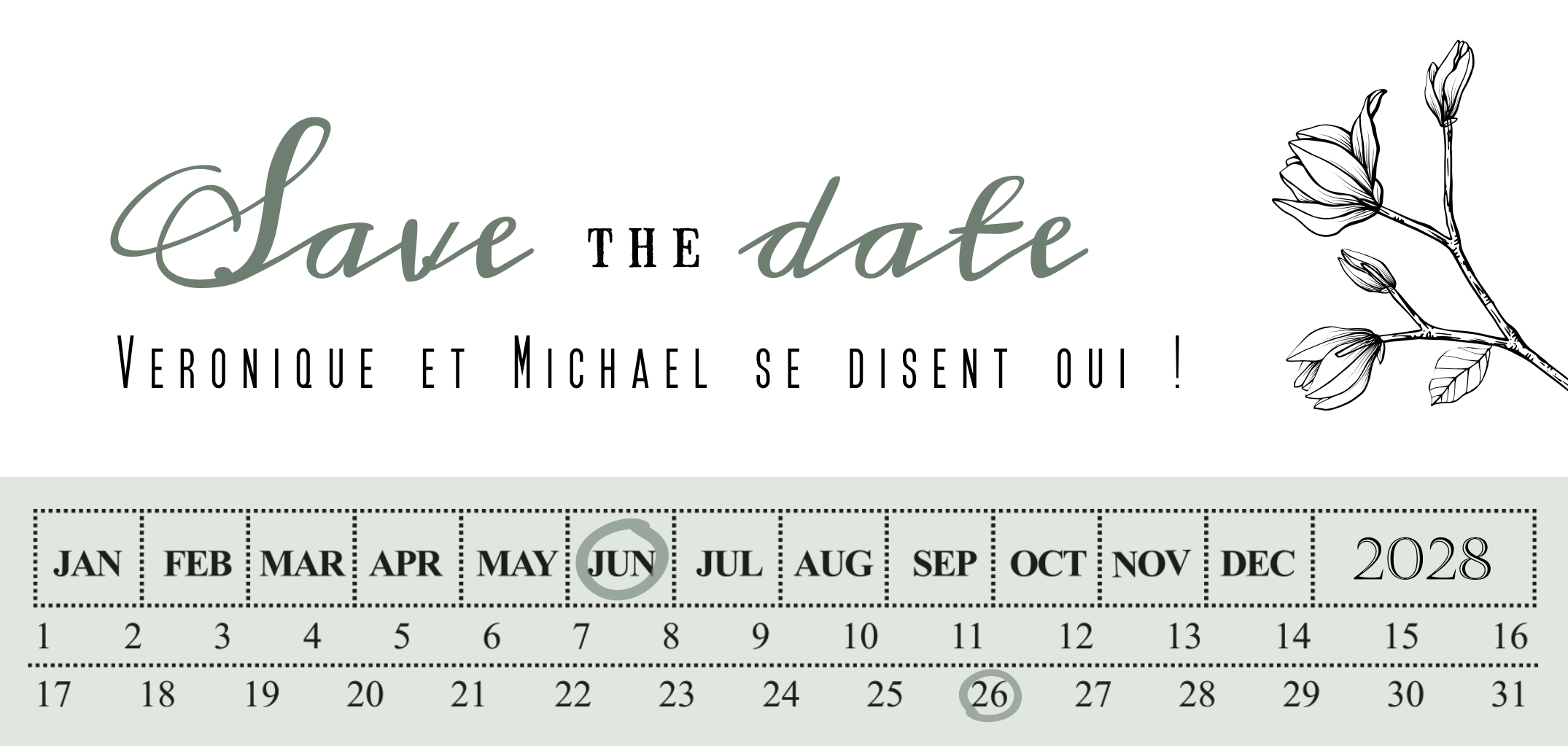 Save the date avec un calendrier et une bande verte claire
