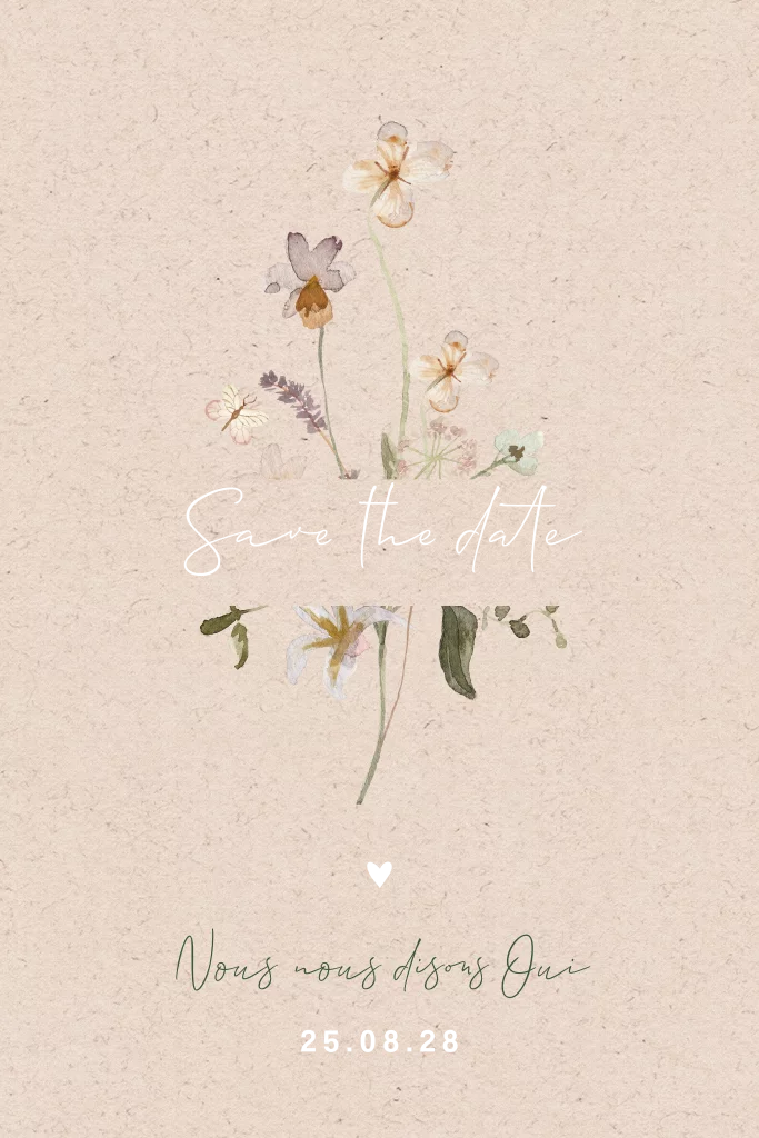 Save the Date avec des fleurs, dorure et coins arrondis