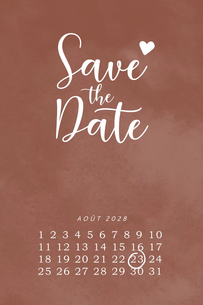 Save the date avec un fond couleur rouge.