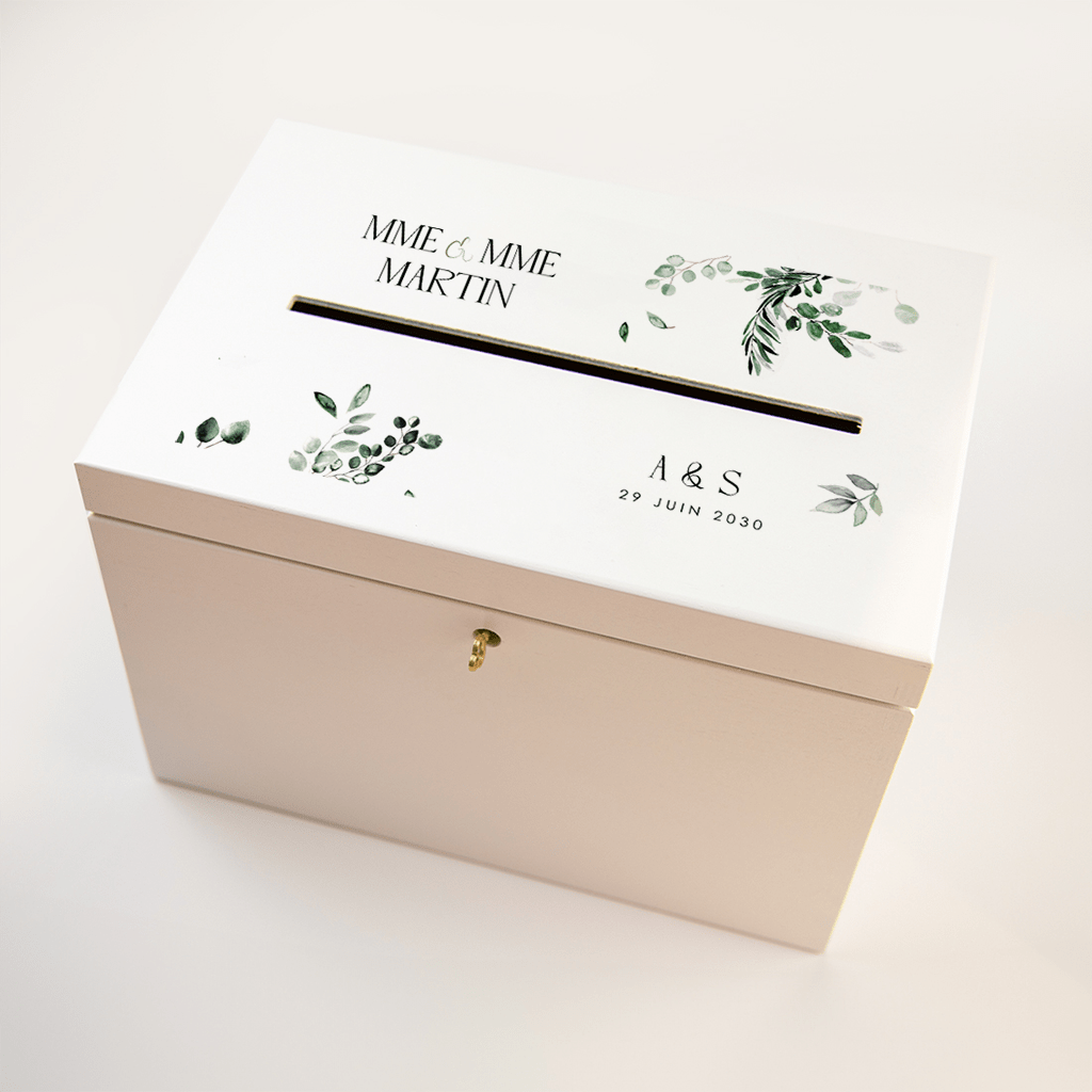 Boîte pour enveloppes de mariage botanique avec eucalyptus