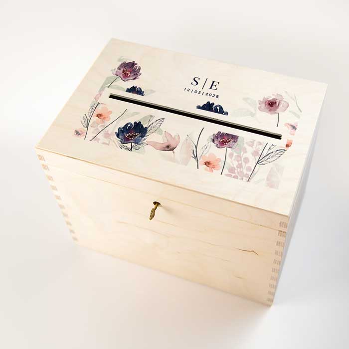 L'impression en couleur est réalisée exclusivement sur le dessus de la boîte. Grâce à notre technique d'impression spécialisée avec de l'encre blanche, nous pouvons intégrer des éléments blancs dans le design de la boîte en bois.