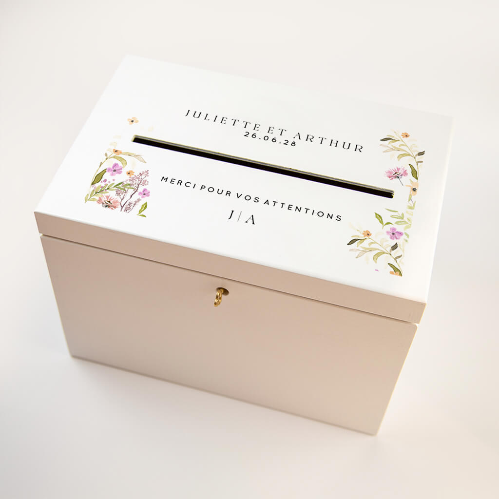 • Boîte en bois blanche avec fente droite : Réalisée en pin avec une finition White Wash, elle apporte une touche élégante et raffinée.
