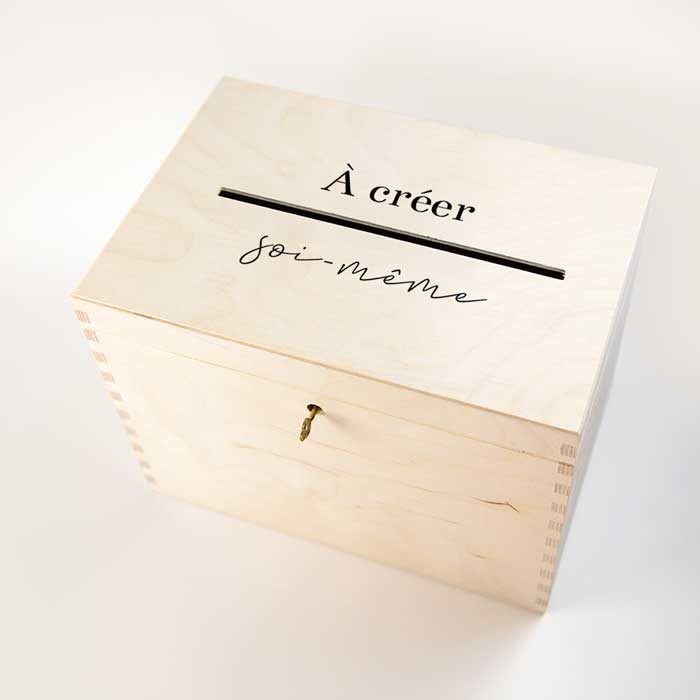 • Boîte en bois naturel avec fente arrondie : Fabriquée en pin brut, cette boîte offre un look authentique et naturel.
