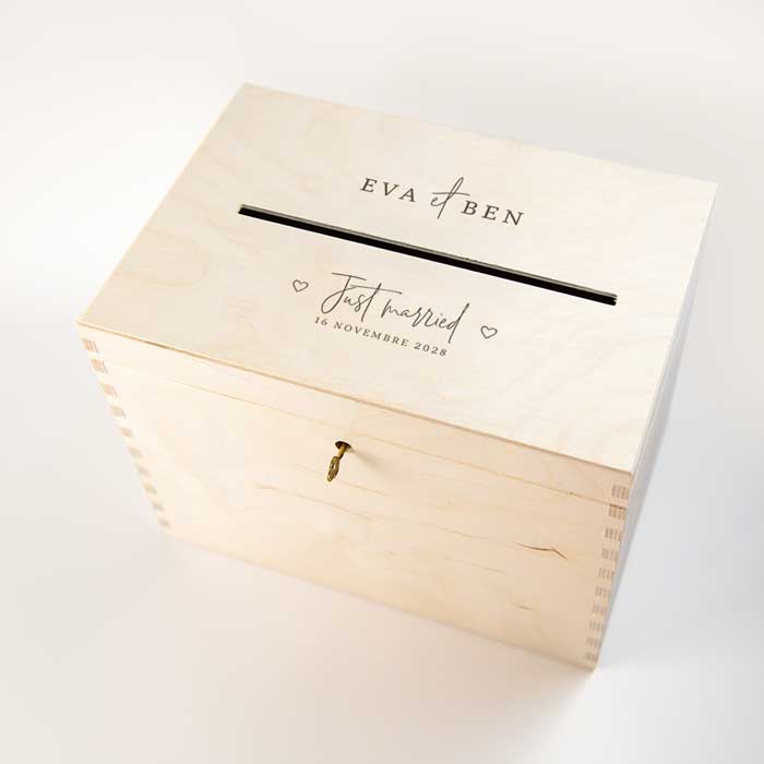 • Boîte en bois naturel avec fente arrondie : Fabriquée en pin brut, cette boîte offre un look authentique et naturel.