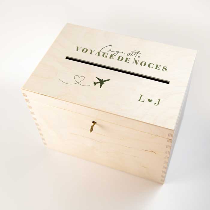 L'impression en couleur est réalisée exclusivement sur le dessus de la boîte. Grâce à notre technique d'impression spécialisée avec de l'encre blanche, nous pouvons intégrer des éléments blancs dans le design de la boîte en bois.