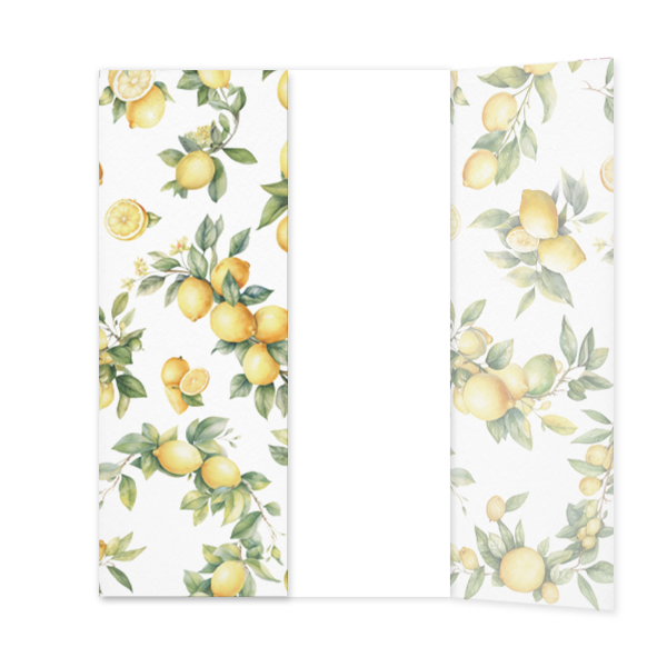 Couverture en papier calque avec des citrons qui peut être pliée joliment autour d'un faire-part de mariage et sceller avec une ficelle, cordon ou un sceau . Cette couverture en calque a été spécialement conçue pour ce faire-part. Bien sûr, ce design peut également être utilisé comme couverture pour d'autres cartes.