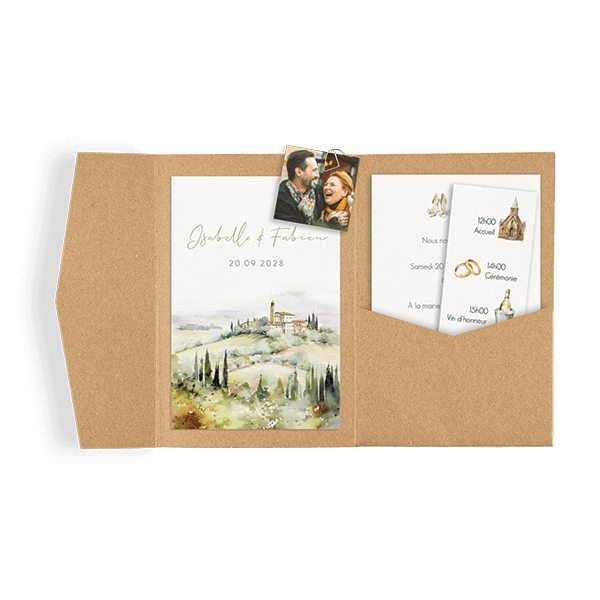 Superbe faire-part de mariage avec paysage à l'aquarelle
