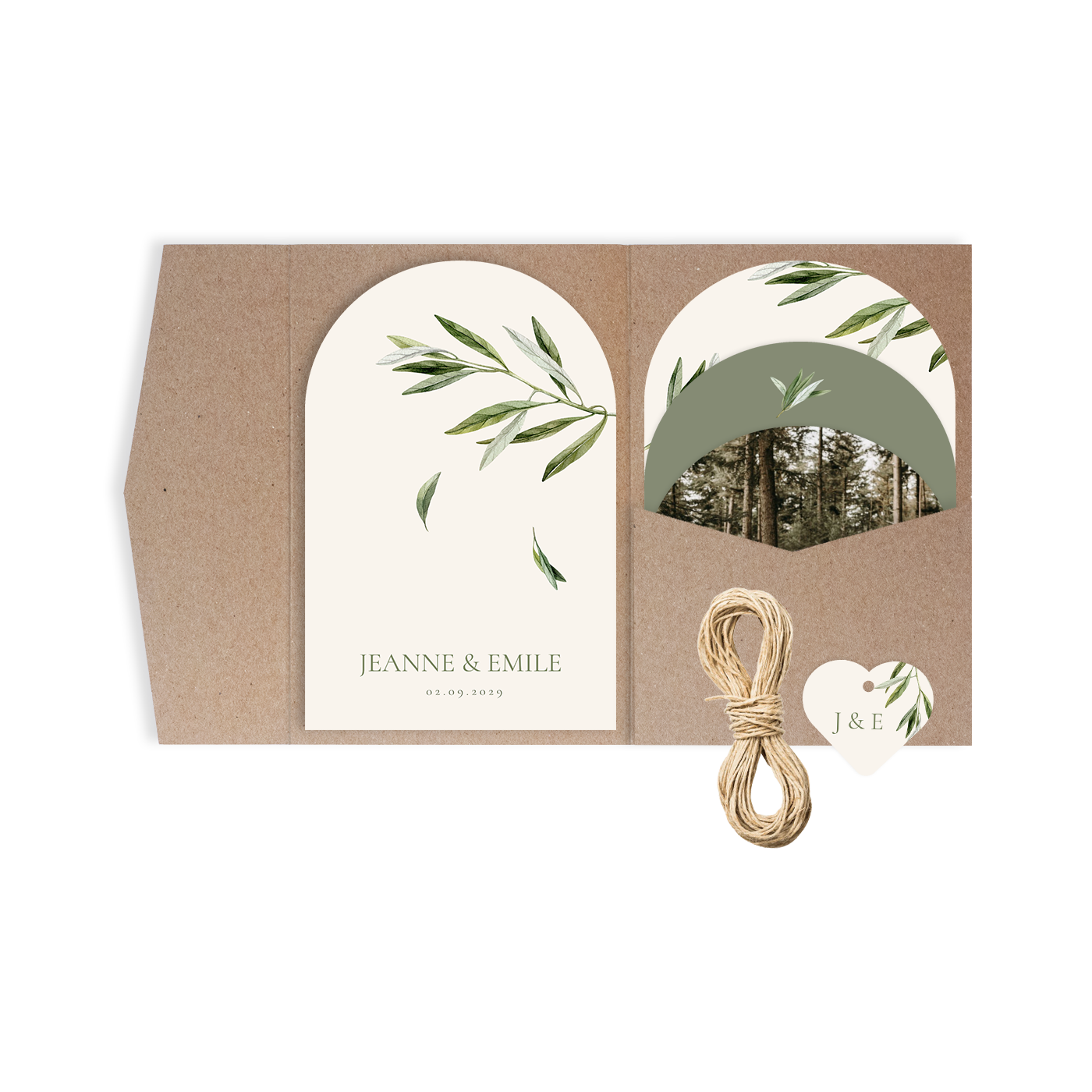 Faire-part de mariage champêtre sous forme d'arche pour pochette