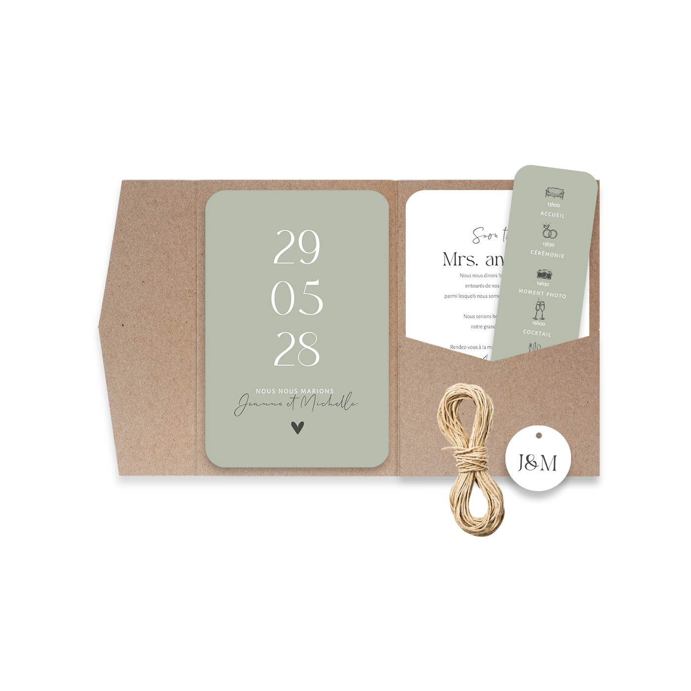 Astuce : Pour fermer vos pochettes, vous pouvez utiliser des autocollants personnalisés, des sceaux de cire, des rubans, ficelles, cordelettes ou cordons en cuir (prévoir 55 à 60 cm par pochette), ainsi que des bandeaux, à commander séparément.