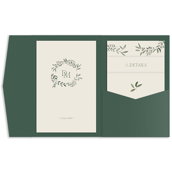 Faire-part de mariage pochette avec dessins de feuillages