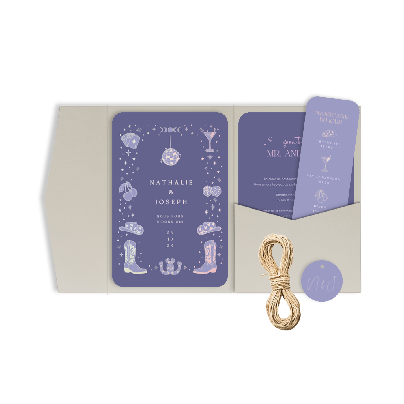 Astuce : Pour fermer vos pochettes, vous pouvez utiliser des autocollants personnalisés, des sceaux de cire, des rubans, ficelles, cordelettes ou cordons en cuir (prévoir 55 à 60 cm par pochette), ainsi que des bandeaux, à commander séparément.