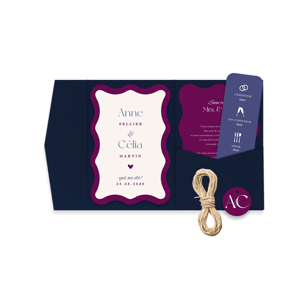 Astuce : Pour fermer vos pochettes, vous pouvez utiliser des autocollants personnalisés, des sceaux de cire, des rubans, ficelles, cordelettes ou cordons en cuir (prévoir 55 à 60 cm par pochette), ainsi que des bandeaux, à commander séparément.