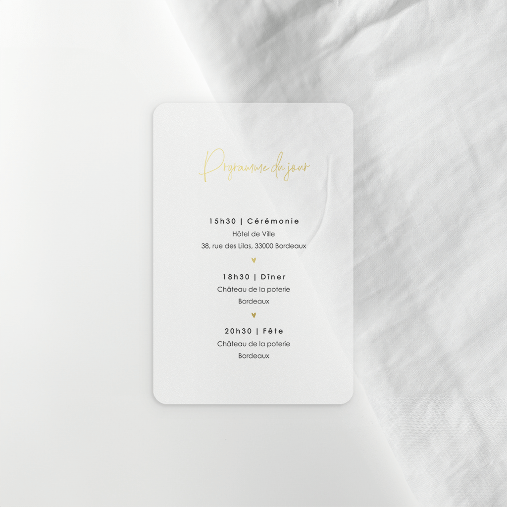 Feuillet d'informations avec des dorures et une jolie typographie